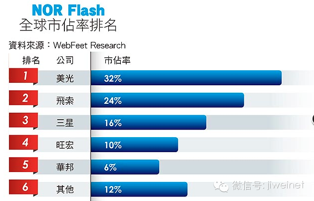 NOR Flash 全球市占率排名
